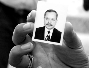 11月12日,一名亲属在巴基斯坦白沙瓦向媒体展示伊朗驻巴基斯坦西北边境省首府白沙瓦领事馆发言人阿布·哈桑的照片。阿布·哈桑当日在白沙瓦住所附近遭枪击身亡。 新华社发