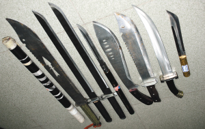 图③:警方缴获的砍刀等凶器。