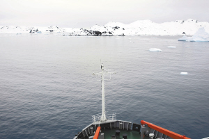 11月12日,“雪龙”号在距长城站1.5海里的海域锚泊。 经过长达32天、累计10275海里的艰苦航行,中国第26次南极考察队乘坐“雪龙”号极地考察船,于当地时间12日凌晨3时30分(北京时间12日15时30分)抵达中国南极长城站。 新华社发