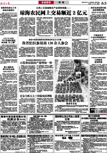 琼海农民网上交易额近2亿元