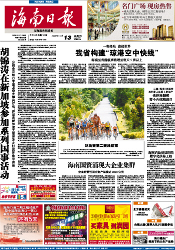 海南日报 头版 001 2009-11-131 2009年11月13日 星期五