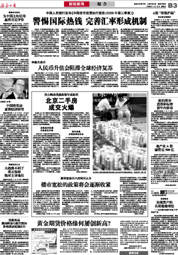 海南日报 财经新闻 011 2009-11-131 2009年11月13日 星期五