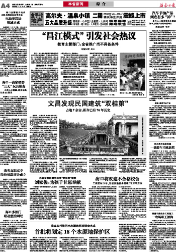 海南日报 本省新闻 004 2009-11-131 2009年11月13日 星期五