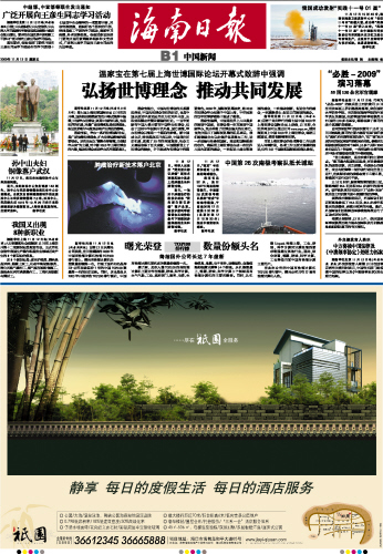 海南日报 中国新闻 009 2009-11-131 2009年11月13日 星期五