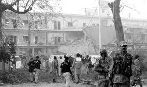巴基斯坦三军情报局西北边境省分部办公楼13日清晨遭自杀式汽车炸弹袭击,造成至少10人死亡,55人受伤,办公楼严重受损。 当地时间大约6时40分(北京时间9时40分),位于西北边境省首府白沙瓦市的巴三军情报局分部办公楼遭自杀式炸弹袭击。 30岁技工阿兹马特·阿里在爆炸中肩部受伤。“我正忙着手头的活,突然听到枪声,”他说,“我看到一辆汽车驶向三军情报局大楼,随后发生巨大爆炸,我被(爆炸产生的冲击波)冲倒在地。” 现场升起大股浓烟。这座三层建筑严重受损,前部和中部垮塌。楼前碎片遍地,街上多辆汽车遭毁。 军警及医疗部门迅速展开救援工作,把伤者送往附近医院救治。工程人员清理废墟,试图寻找受困人员。尚不清楚袭击发生时楼内有多少人。 巴军方发言人阿塔尔·阿巴斯说,炸弹在情报局办公楼外爆炸,“已有5名公职人员死亡”。一名不愿公开姓名的官员告诉美联社记者,死者多为情报局办公楼警卫。 西北边境省警察长官马利克·纳维德说,袭击者所驾汽车塞满300公斤烈性炸药和迫击炮弹,袭击造成至少10人死亡。西北边境省新闻部长米安·伊夫蒂哈尔告诉媒体记者,袭击造成55人受伤。 这是近半年来首次以巴三军情报局建筑为主要目标的袭击事件。 三军情报局西北边境省分部遇袭大约一个半小时后,白沙瓦西南方向通往北瓦济里斯坦地区的要塞本努一个郊区警察局也遭自杀式汽车炸弹袭击。 本努市警察局局长伊克巴尔·马尔瓦特说:“袭击者驾驶装有炸药的汽车撞向警察局办公楼……救援人员正在废墟中寻找生还者,伤亡人数很可能会上升。” 这次袭击导致6名警察、两名平民死亡,包括警察局长在内的22人受伤,警察局办公楼遭炸毁。 西北边境省与南瓦济里斯坦地区接壤,白沙瓦市尤其成为武装人员袭击重点,几乎每天都会发生炸弹袭击,严重威胁当地居民安全和生活。 胡若愚(新华社供本报特稿) |