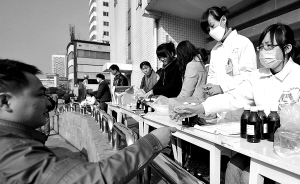 从当日起,湖南中医药大学第一附属医院等单位联合推出“中医药预防甲流,关爱你我健康”大型公益活动,长沙市12000名出租车驾驶员可在指定地点免费领取用于预防甲型H1N1流感的中药香囊和汤剂。 新华社记者 赵众志 摄 |
