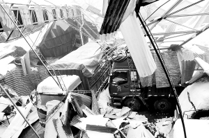 邢台果品市场顶棚被暴雪压垮