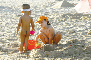 | 11月13日,中、俄两国小朋友在大东海玩沙。 本报记者 苏建强 摄