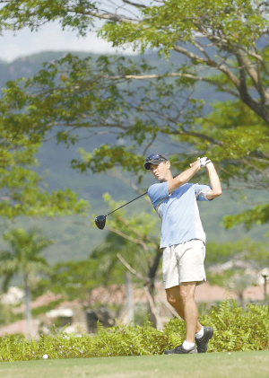 | 11月13日,英国客人在亚龙湾球会激情挥杆。 本报记者 苏建强 摄 |