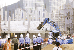《鹿回头村两年冒出312栋违建房》后续 鹿回头村部分违建昨被拆除 11月13日上午,三亚市综合行政执法局、河东区等相关部门联合执法,出动了1000余人的拆迁队伍,12台拆迁机械,对鹿回头村安置区内目前仍未停工的几十栋违章建筑进行依法拆除。这是三亚市鹿回头片区拆迁行动中第一批被拆除的违章建筑。 (记者 苏建强/图 记者 刘贡 通讯员 林志猛/文)