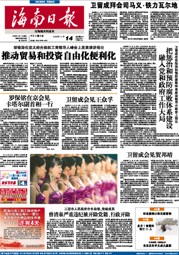 海南日报 头版 001 2009-11-141 2009年11月14日 星期六