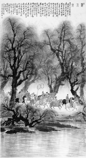 诗圣杜甫忧国忧民之心,爱国爱民之情,积极用世之志,对后代的文化人产生了巨大的潜移默化的影响。他的诗歌展现了古代知识分子以天下为己任,以江山社稷为重的高尚人格。他有一颗伟大的心灵,在道德方面,在人格方面,都有伟大的建树。朱熹对杜甫推崇得不得了,认为他是光明正大、磊磊落落这样一种在人格方面成为楷模的人。这显然已不是一种文学的评价,而是一种文化的评价。明安先生将杜甫的代表作,转化成绘画语言,用精心磅礴的长卷来表达,堪称少见。