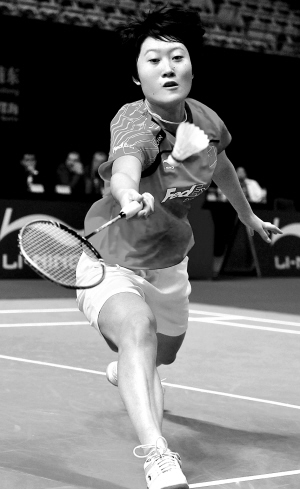 11月17日,在2009中国羽毛球公开赛女单资格赛中,夏静云以1:2不敌队友刘鑫,无缘正赛。图为中国选手夏静云在资格赛中回球。新华社发