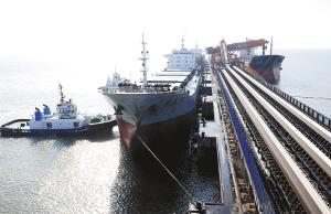 这是两艘轮船停泊在秦皇岛港煤炭码头装货。 记者从秦皇岛港获悉,河北秦皇岛港今年吞吐量超过2亿吨,为秦皇岛港完成全年生产目标奠定坚实基础。 新华社记者 杨世尧 摄