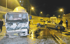 11月17日凌晨3时许,贵州省贵阳市贵开路高架桥上发生一起交通事故,一辆本田轿车与一辆水泥搅拌车相撞。经现场医务人员确认,本田轿车上的3人当场死亡,水泥搅拌车上1人轻微受伤。目前,死者身份和事故原因正在调查中。 新华社发