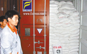 图为福州海关缉私人员查获的走私面粉。福州海关缉私干警辗转闽浙鲁等地连续追查,成功破获了一起案值495万元的特大粮食走私案件。日前,福建省宁德市中级人民法院对这起案件作出了判决,李荣华等6名涉案罪犯分别被判处六个月至三年不等的有期徒刑。 新华社记者 来建强 摄