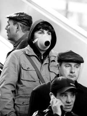 | 在乌克兰首都基辅,一名戴口罩的男子在火车站行走。 新华社/法新 |