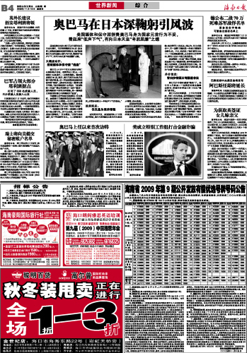 海南日报 世界新闻 012 2009-11-191 2009年11月19日 星期四