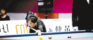 19日,在2009世界女子9球锦标赛第一轮比赛中,潘晓婷以7:6险胜日本选手河原千寻。 新华社发