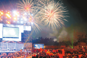 晚10时,焰火晚会已经结束,但很多人并没有立即离去,他们还在公园意犹未尽地歌着、舞着……