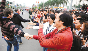 ←巡游队伍中的外国友人与市民同欢乐。 本报记者 王军 摄