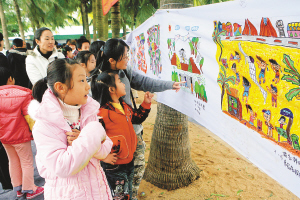 ↑11月18日,海口在万绿园里举行百名少年儿童百米长卷绘画比赛。 本报记者 陈德雄 摄