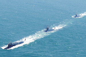 我某新型潜艇全面形成作战能力 蓝鲸,从这里起航 这是潜艇编队在大洋上训练。 人民海军潜艇部队近日传出喜讯:我国自主研制的某新型潜艇圆满完成极限深潜、水下高速、深海发射战雷等系列试验和训练考核,所有性能指标均达到设计和作战要求,标志我国新型潜艇全面形成作战能力。 新型潜艇的诞生,凝聚着海军驻某厂军代表的心血和汗水。他们,用忠诚和热血托起共和国钢铁“蓝鲸”,从船台驶向大洋。 新华社发(钟魁润摄)
