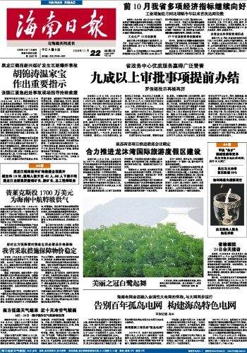 海南日报 头版 001 2009-11-221 2009年11月22日 星期日