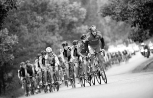 9个赛段,9个清晨,几乎都能看到自行车爱好者的陪骑,业余水平的他们不甘寂寞,虽然很快就被职业车手拉开距离,但他们却形成了赛场外的另一个大集团,竞赛爬坡,奋力冲刺,享受冲刺时刻的喜悦。