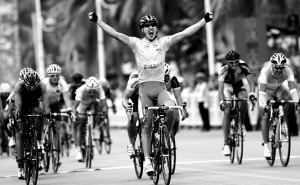 环岛赛东方至三亚赛段,俄罗斯车手伯瑞斯·斯皮斯率先冲刺终点。