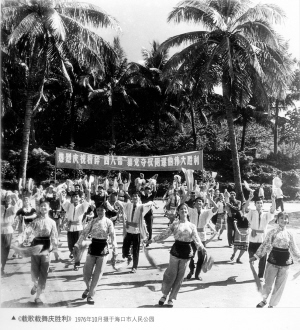 1976年10月23日,海口街头锣鼓喧天,人们载歌载舞