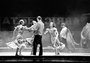 舞剧《卡门》使用的音乐是以歌剧《卡门》中的几个重要主题为线索,其中包括雄壮的序曲斗牛士之歌、哈巴涅拉舞曲、阿拉贡序曲,同时还有脍灸人口的《阿莱城姑娘》中的法兰多拉舞曲。该剧的音乐设计也经过重新编配,采用现代化的配器手法,在传统的歌剧旋律中加入蓝调布鲁斯的节奏,现代感十足。