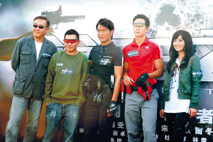 | 左起:导演尔冬升率主演杜汶泽、古天乐、吴彦祖、蔡卓妍出席关机仪式 |