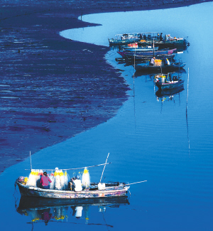 入选理由:如同剧场舞台一样精致的海上渔家图。 |