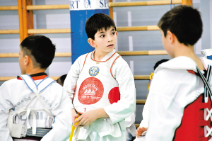 “5年前,我亲历了别斯兰人质事件,并在这起恐怖袭击中失去了母亲和妹妹。2006年5月我曾应中方邀请与其他幸存儿童一起到中国海南省三亚疗养。如今,我已经走出人质事件的阴霾。”11月20日,在俄罗斯别斯兰第一学校体育馆,鲁斯兰(中)在练习跆拳道间隙小憩。鲁斯兰说:“我将来要当(跆拳道)世界冠军,拿大奖杯!我还想亲眼看到成龙!” 新华社发