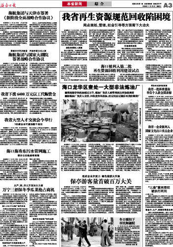 海南日报 本省新闻 003 2009-11-251 2009年11月25日 星期三