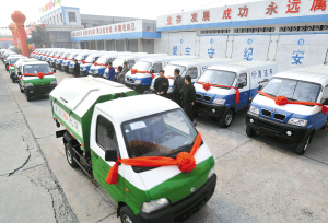 | 11月26日,武汉市首批149台环保型密闭式垃圾收集车交付使用。首批环保型密闭式垃圾收集车将在武汉市中心城区和东湖风景区投入使用,将实现快速、安全、无污染式收集转运垃圾,有效降低环卫工人劳动强度,避免城市环境二次污染。 新华社发 |