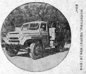 试制两辆汽车时,由于汽车尚未定型,整个驾驶室、车头盖等都是手工敲出来的。由于时间关系,还没有研制出专门设备。如果按两个月造两辆车的速度算,到国庆节的5个月时间,最多只能造成6辆汽车。