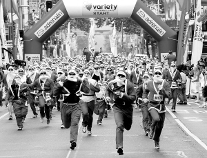 11月29日,数千名“圣诞老人”在澳大利亚悉尼参加为残疾儿童募捐长跑。 新华社/法新