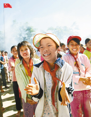| 琼中黎族苗族自治县红毛希望小学的师生在企业帮助下,用上了干净的地下水,学生们满脸欣喜。王凯 摄 |