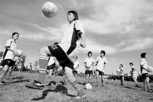 在海南省琼中黎族苗族自治县这个国家级贫困县里,2006年成立了海南唯一的女子足球队———琼中女足,这是全国惟一一支完全由少数民族姑娘组成的业余女足队伍,在一位年过古稀的老教练带领下,克服了没有标准足球场、没有陪练等困难,成长为一支屡创佳绩的球队。在今年11月初结束的全国U16女足锦标赛中,姑娘们更是力克强队,夺得了全国第三的好成绩。
