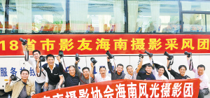 本报海口11月29日讯 (记者王凯)由奇声摄影协会组织的18省市海南风光摄影采风团抵达海口。20多位身背“长枪短炮”的摄影师开始在海口、琼海、万宁、五指山、三亚等地进行为期5天的摄影创作,他们将用手中的相机,不同的眼光,寻觅、展现海南之美。