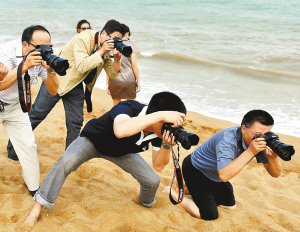 | 影友们在博鳌玉带滩上抓拍。