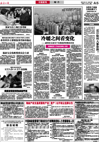 | 海南日报 中国新闻 综 合 005 2009-11-301 2009年11月30日 星期一 |