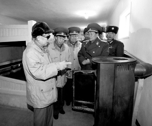 这张朝鲜中央通讯社12月1日提供的照片显示,朝鲜最高领导人金正日(左一)近日视察了人民军109部队。他要求部队搞好军事训练,关心士兵生活。 新华社/朝中社