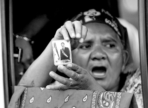 11月30日,在洪都拉斯首都特古西加尔巴,一名妇女手拿一张被罢免总统塞拉亚的照片参加游行。当日,大批洪都拉斯被罢免总统塞拉亚的支持者在其避难的巴西驻洪都拉斯大使馆附近游行,抵制11月29日举行的洪都拉斯大选的结果。 新华社发
