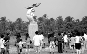 | 文昌,中国海南航天发射场一号工位纪念碑。建设中的文昌卫星发射中心成为人们关注的新景点 本报记者 李幸璜 摄 |