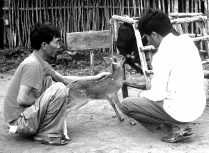 呦呦鹿鸣,食野之苹。这种自然界生物和谐相处的美丽画面,一度差点从海南永远消失。海南坡鹿,身形矫健轻灵,鹿角威武恢宏,它曾广布在海南岛低山丘陵地带的干性草原和稀树草原地区,甚至与老百姓放养的牛群一起混食杂草。然而,海南坡鹿命运多舛,因其具有保健价值,屡遭捕猎,数量急剧下降,至1976年建立海南大田自然保护区和邦溪自然保护区时,两地分别仅存坡鹿26头和18头。 经过30多年的保护,如今海南坡鹿种群已得到一定程度的恢复。至2007年5月省林业局的最新普查数据表明:海南坡鹿种群数量已达1785头。 这张相片,反映的正是海南大田自然保护区建设初期工作人员在保护区内用望远镜观察海南坡鹿的情形。从相片看,当时的大田自然保护区非常简陋,工作人员装备也很简单。今年90岁的大田自然保护区管理站第一任站长杨兴随告诉记者:“1976年大田自然保护区成立时,保护区非常简陋,除了两间茅草屋,什么都没有。所以非常遗憾,没能留下一张大田保护区成立时的相片。”` 海南坡鹿曾多如黄牛 说到大田自然保护区的成立,这要追溯到上个世纪六七十年代开展的海南岛野生动物资源考察,这是新中国成立后,国家派专家对海南岛的野生动物资源做的第一次摸底普查,第一次系统地、科学地、详实地调查了海南野生动物资源分布的情况,并为研究海南野生动物的分布、保护、开发等提供了科学依据。 今年70余岁的徐龙辉教授曾参加了那次考察,并根据自己在海南岛上的考察经历写了《海南岛野生动物考察散记》一书。海南日报记者也多次有幸采访并接触过徐龙辉教授,对海南坡鹿最早的调查故事略知一二。 海南坡鹿如今只在自然保护区能见到。然而,它们曾与人类亲近相处,海南不仅有“鹿回头”的民间传说,神鹿化作美丽的女子而与凡人结婚;苏东坡被贬海南后,留下过关于海南坡鹿的诗句:侣鱼虾而友麋鹿。在调查中,考察队员也听到很多上了年纪的老猎人回忆:1960年代前,海南的坡鹿象黄牛一样多,常混入牛群吃草,看上去金黄色的一片。 但是在上个世纪的调查中,海南坡鹿的种群数量已所剩无几,处于极度濒危的状态,这主要是由于人们迷信坡鹿的保健价值过度围捕造成的。1964年,考察队到白沙县调查坡鹿时,当时的县林业局的同志对考察队员说:“你们若要了解坡鹿的经济价值,到街上找长得肥胖健壮的人询问即可。因为只有那些吃过坡鹿的人才会长胖,才有健康的身体。”徐龙辉告诉记者,那时海南坡鹿数量已经很稀少,若有猎人打到坡鹿,就会买大量鞭炮回家燃放,以示庆祝。当时曾有一副鹿茸几经转手,价格抬到1.3万元。 找寻坡鹿的艰苦历程 海南坡鹿原本无此名,考察队调查时,中外专家还将其称为泽鹿,认为它是泰国泽鹿的一个亚种,直到考察队采集到我国第一号坡鹿标本后,才为其正名为“海南坡鹿”。 “我们在白沙县的考察,对海南坡鹿一无所获。”徐龙辉说,1964年4月,考察队“兽类研究组”几位同志来到东方县大田公社的抱坡村住下,从当地群众口中了解到还有少量坡鹿存在,便在该村开始了采集坡鹿标本的艰苦历程。 考察队员找到村中曾打过坡鹿的几位猎手长谈,了解他们过去曾经采用过的狩猎坡鹿的方法。从古到今,当地猎人一直用“狗赶人围”的狩猎方法。即发现有坡鹿在一片灌木丛中藏匿,即组织人力把它团团围住,然后放狗进去搜索,把坡鹿从丛林中追赶出来猎杀。坡鹿数量较多时,三四人带一条猎狗就可以将小面积的丛林围起来狩猎;坡鹿数量越少,围的范围就越大,需要的人和狗就越多。上世纪60年代中期,时常要组织百多人和十多头狗的队伍方偶有收获。随着坡鹿数量急剧减少,后来又改用跟踪狩猎法,就是找寻坡鹿活动过的新鲜足印,即刻紧循足印去寻找,一日一夜,二日二夜,三天三夜……不停地跟着,把坡鹿赶得筋疲力尽,四蹄开叉,倒地不动为止。 根据实际情况,考察队选择了后一种方法,还请了村中3位有经验的猎手一起帮助采集标本。连续追踪数天,考察队队员巫露平打到一头雌性坡鹿,它便成为我国第一号坡鹿标本。 为坡鹿正名并设立保护区 标本采集到后,考察队员十分细心对它进行身体各部分的测量记录,然后做成一副完整的骨骼标本。随后,考察队又从猎人手里购买到了一副完整的鹿角。 根据采集的成年母鹿标本以及3个不同年龄的鹿角标本分析,考察队认为成年母鹿标本体形比泰国泽鹿小,鹿角分叉较简单,角的尖端圆而不扁,与泰国泽鹿明显不同,应属海南岛的特有亚种。由于当地人称此鹿为“坡鹿”,考察队在《海南岛的鸟兽》一书中将其正式命名为“海南坡鹿”,这一正名大大提高了海南坡鹿的保护地位,并上报国家林业局,于1985年被列为国家一级保护动物。 随后,考察队和当地干部、猎人一起,对东方县沿海稀树草坡的坡鹿进行了较细致的数量和分布调查。发现坡鹿不但受到众多猎人的追杀威胁,种群数量几达灭绝的边缘。其生存栖息环境也因经济的高速开发而日见减少,考察队立即写报告向国家主管野生动物的林业部野生动物保护局提出,把坡鹿列入国家一级保护动物,并立即向当地县委县政府汇报情况,建议立即划定白沙县的邦溪和东方县的大田两地为坡鹿保护区,绝对禁止任何人进去打猎。自然保护区的正式成立使一个濒临灭绝的美丽物种的生存有了巨大转机。 与海南坡鹿结缘的老人 海南坡鹿