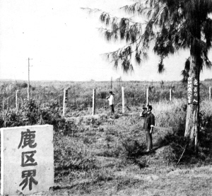1980年代初的坡鹿保护区设施还很简陋。图为保护区工作人员在用望远镜观察坡鹿。