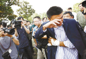 10月26日,上海“孙中界事件”当事人孙中界(前右)得知处理结果后激动不已。